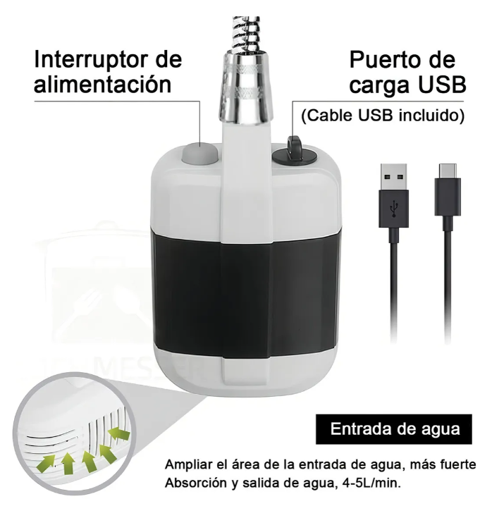 ¿Extrañas una buena ducha cuando estás de camping o necesitas una forma fácil de bañar a tu mascota en el jardín? Esta Ducha Portátil con bomba recargable es tu solución. Simplemente sumerge la bomba en un balde con agua y disfruta de un chorro de agua constante donde lo necesites. Es ligera, potente y se carga por USB. ¡La comodidad de un baño en cualquier lugar! 🏕️